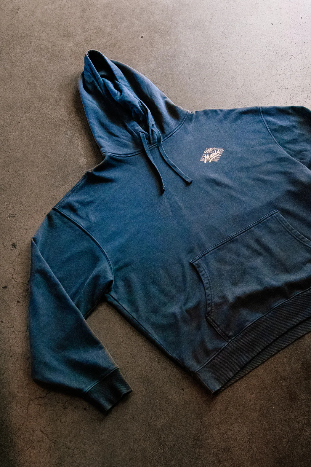 The Manly Hoodie lands at a washed black, cut from 100% sustainable cotton and tagged on the back with a throwback paradise print by local artist Jamie Brown. Heavy on comfort, built for coastlines and concrete.